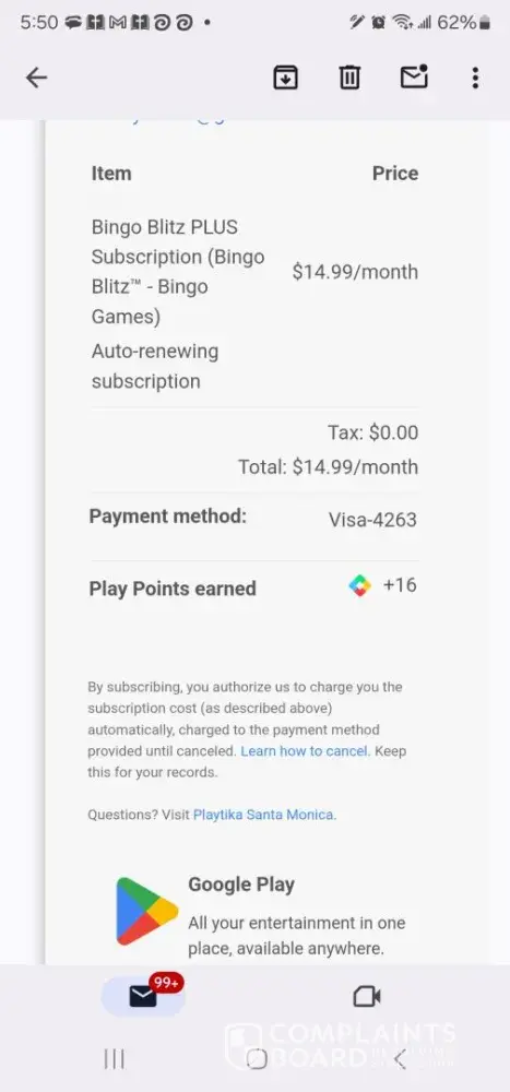 I have a Bingo Blitz account and have been playing for a while now. In either August or September of this year 2022 I have subscribed to gett more coins by paying the $15 subscription. I have been trying to unsubscribe from this for a while and I can't seem to get it done. But every month I keep getting charged. Please remove my card details and unsubsribe me. Please unsubscribe me and remove my card from Playtica and google buffalo studies and from Bingo Blitz please. I would like to have it done now and would also like a refund ASAP