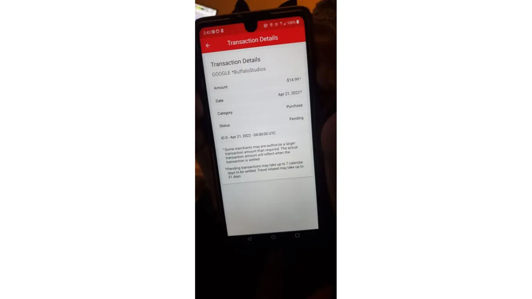 I have a charge of $108.24 charged to my card. I dont know why because i didnt purchase anything. It says checkcard 06/01 google *Buffalostudios Mountainview CA 10:24am. My phone accidentally made a purchase in my pocket while i was at work. I dont want this item. The transaction number is GPA-[protected]. As u can see i did not play the game. My phone is set for one tap buy.