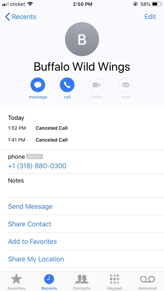 I ordered food from buffalo wild wings, to be delivered by doordash.