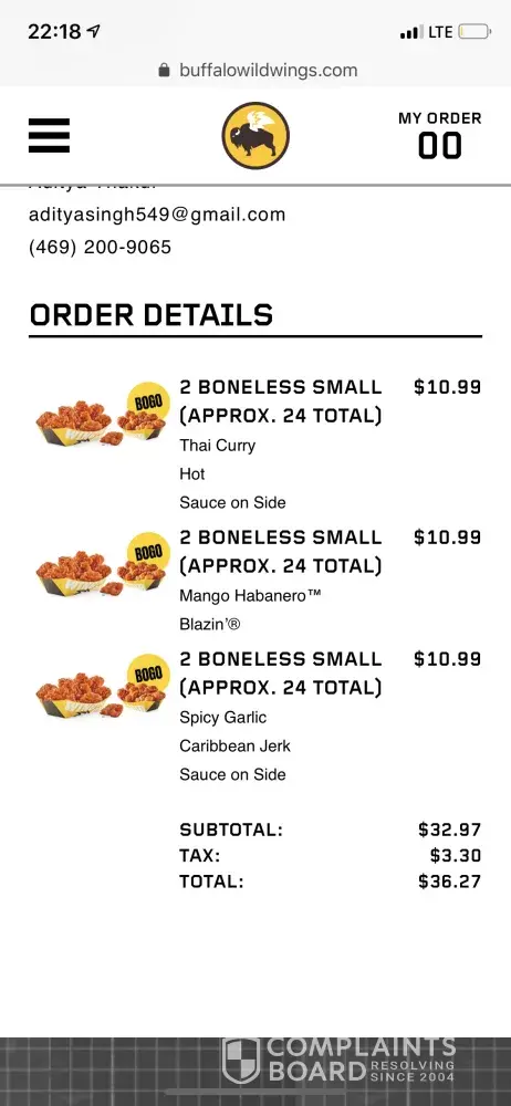 However, I paid in full price for what I ordered but I believe I was short changed and would like an letter of apologize from customer service. I believe Buffalo Wild Wings lack training of its employees and managers.