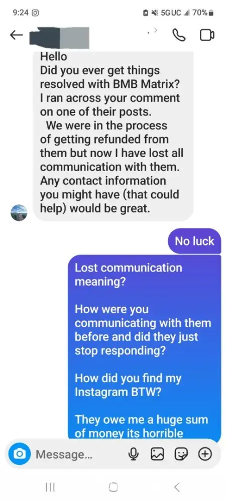 I urge anyone considering investing in BMB Matrix AKA Build My Brand to conduct thorough research before proceeding. I wish I found this info before I lost my HUGE investment: 1. Legal Troubles: Since December 2023, at least FIVE lawsuits have been filed against BMB. A simple search for “BMB Matrix lawsuits” will reveal the details. 2. Fake...