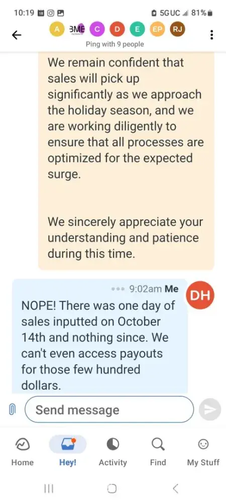 I’ve got exact same problem. Been over three months and with all the charge backs from items not even shipping out and fees I’ve not only lost my buy in of the 4,995 but Im losing my market capital as well. They tell you that they take the cancellations and give you refunds in the form of credits. They don’t even balance the weekly sheets to accurately reflect these charge backs and completely ignore my emails. Not to mention I only get a sale every 2-3 weeks that ends up getting cancelled for not shipping out. After 3 months I’ve lost nearly 6200 in total. They have a gureentee that they will refund your buy in after 12 months if you haven’t made 4,995 roi. But after experiencing this company the horrible communications/ customer service, I seriously doubt they will give the money back. I’m down for a lawsuit. Because at a minimum people need to be warned.