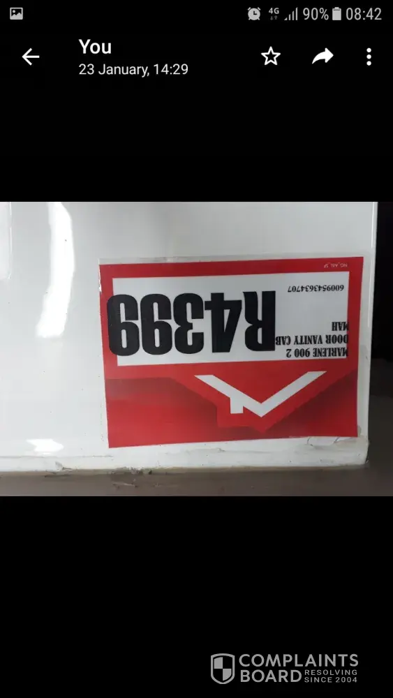 On January 23, 2018, I went to Builders Atterbury to purchase a "Marlene 900 2 door vanity Cabinet Mahogony [protected])" that was on display for R4300 (see attached photo)