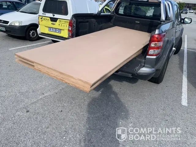 I pulled on the front side of the trolley and the Builders Member pushes from the back. As we got to the outside your member said my car was to far - and the wind is blowing - so he turned around leaving me to load the boards on my vehicle. A shopper from Pick & Pay saw what was happening and assisted me loading the boards supawood - size 2.7mt x 1.2mtr (3) and all the long offcuts.