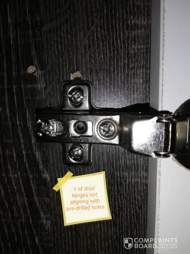 >BIC doors hinges do not all aligning with pre drilled holes.