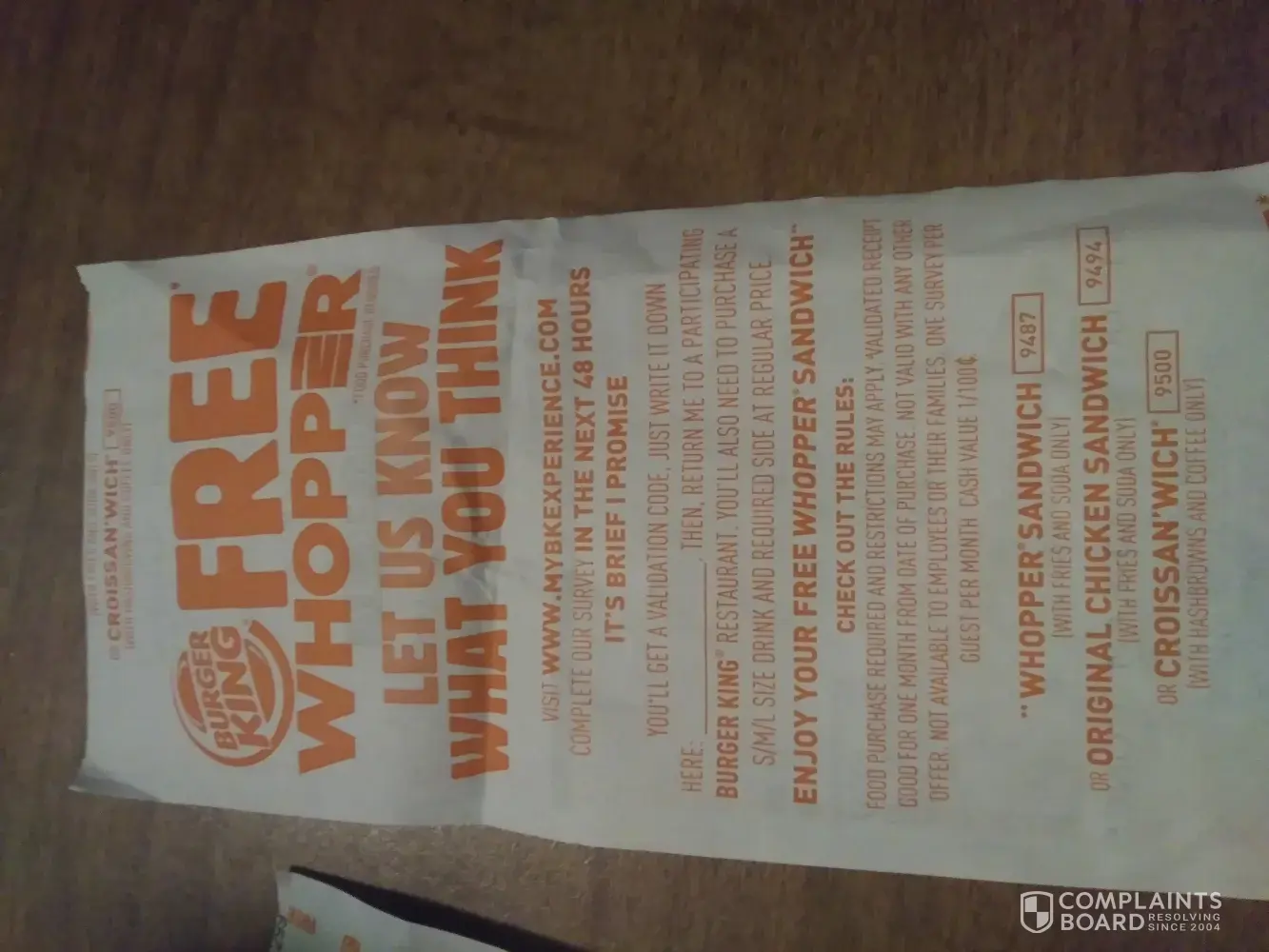 You advertice The Free WHOPPER survey its on the back of my reciept. Although when i attempted it I discovered there was no survey # on my reciept. I called. The BK I made my purchase at.