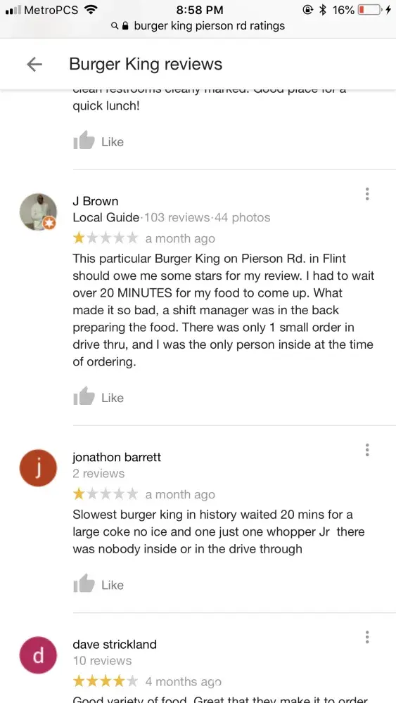 Filing Complaint about Burger King on East Warren. Address 17440 East Warren. This is the worst Burger King in The Whole Detroit Area. Everytime we and other customers frequent this store for food. We get pulled to the side, so that they can cheat the timer. Customers are asked to back up, and pull back up or pull to the side so order can be brought out.