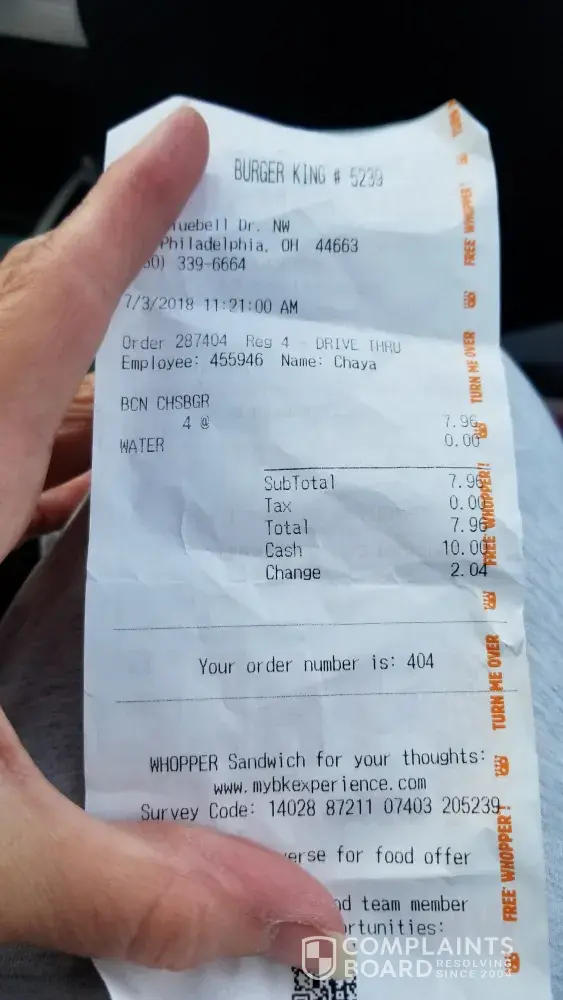 Drive thru complaint,