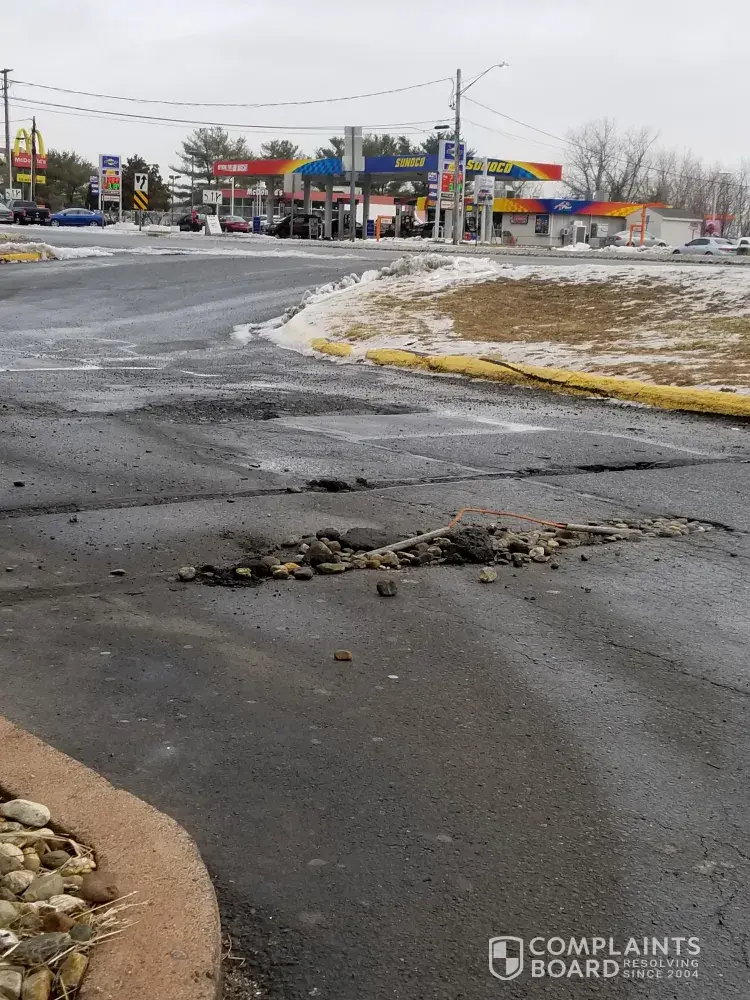The driveway and drive through at your 610 HARTFORD road location is deplorable. My car dropped with a thud in those holes and what's worse you can't avoid them and on your way out there is an exposed wire. Horrible conditions.