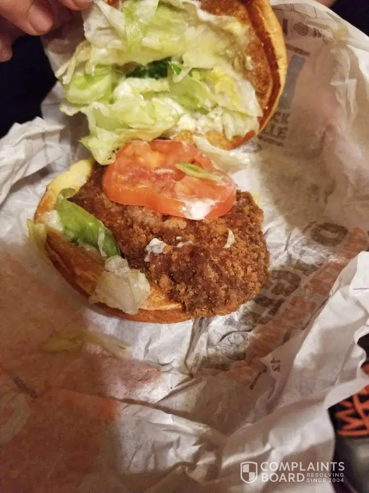 The Burger King in Halls Crossroads phone number [protected] address 6825 Maynardville Pike Knoxville Tennessee 37918. Got two chicken sandwiches for the $6. Got home they were so dried out tough and very dark. Probably been laying under a lot for a very long time. Went to the Burger King's to get my order replaced or money back. The manager on duty refused to replace my order or to give me my money back. Was very disrespectful argued with me they were not bad it was just the breading on them. Have pictures. She kept my receipt said she would show it to her general manager to see what she says about it. I have never been treated so bad in my entire life over to chicken sandwiches. Or any food for that matter. This lady needs to be fired big time in my opinion. I'm a Christian person and don't believe in treating anybody that way over to sandwiches or for any reason. My name is Judy over hope my address is 310 Butler Lane Maynardville Tennessee 37807 my phone number is [protected]. I called the main corporate office that was in Florida phone number [protected]. They gave me an address to send pictures to that will not come up. I filed a complaint.