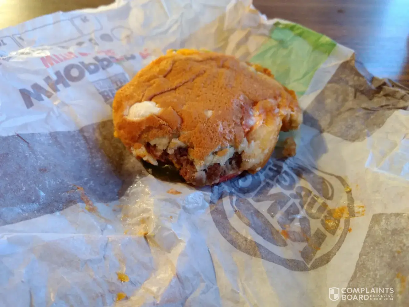 I went into the Burger King (store # 3923) in Plymouth, Michigan @ 40880 Ann Arbor Rd. Plymouth, MI. 48170. I ordered two Whopper JR with cheese. When I got them home one of them looked like it had been stepped on. Only half the top bun was there and the bottom looked like it had been bitten. I attached a picture... The case# is [protected] I am pretty shocked at the fact that Burger King would let a burger that looked like the one I received go out to a customer. I obviously had SOMETHING happen to it. I doubt a worker would grab half a bun and put on the burger and think that would be okay. I really upsets me how they put up all these posters of these perfectly put together burgers and then send one out that looks like a dog or cat slapped it around and took a couple bites...