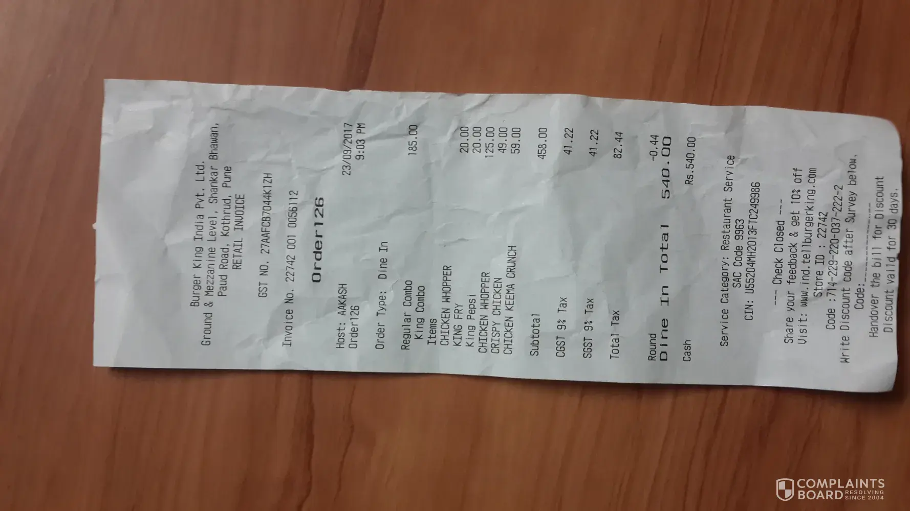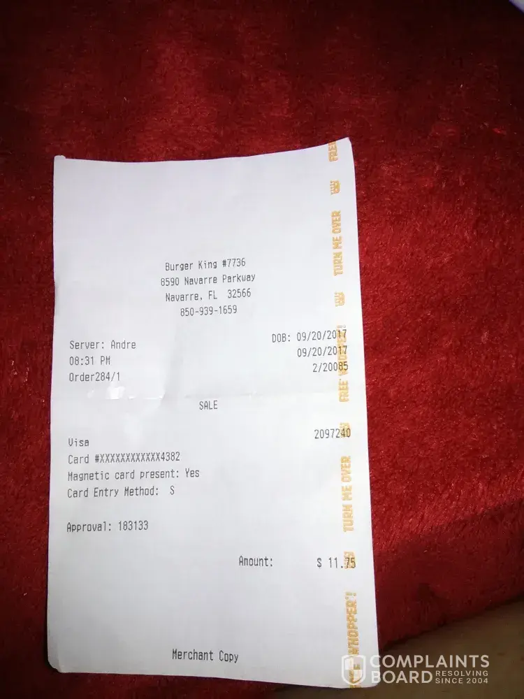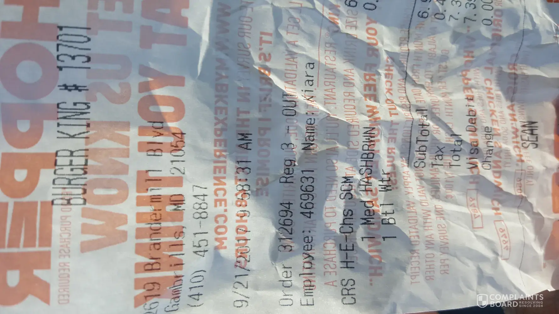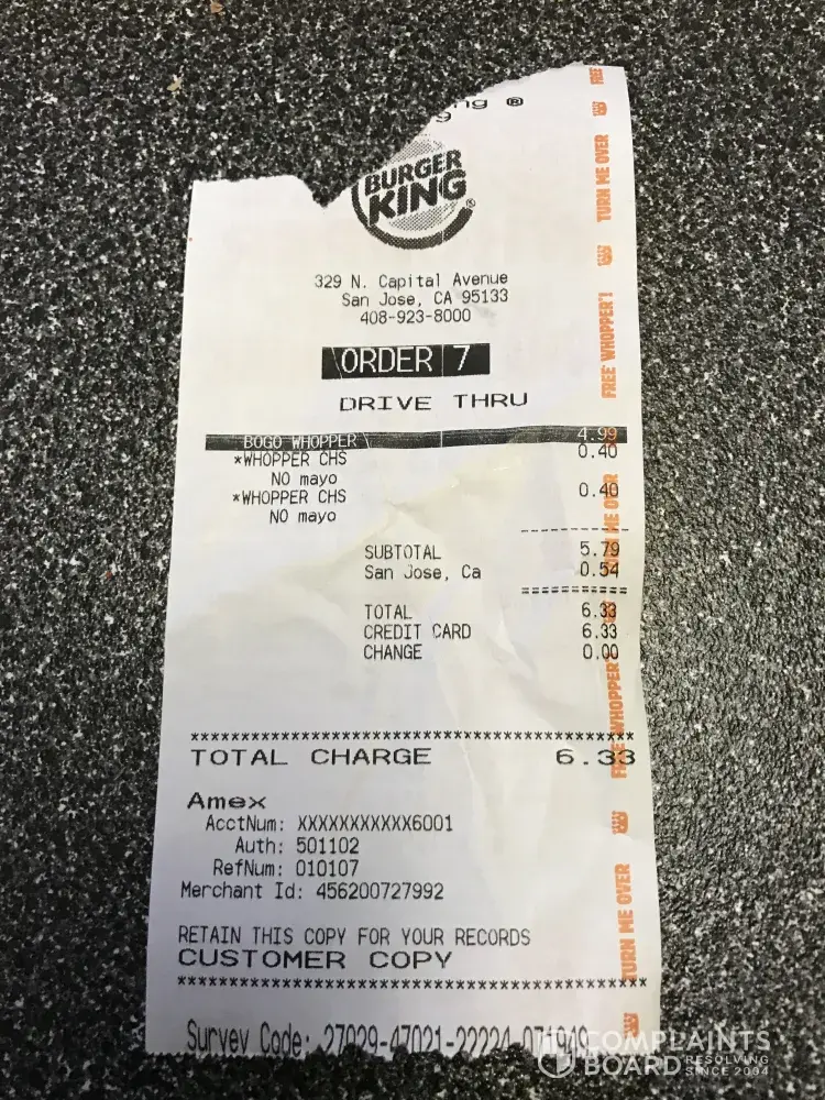 Burger King complaint about customer service @ burger king (r) 005535 order 75