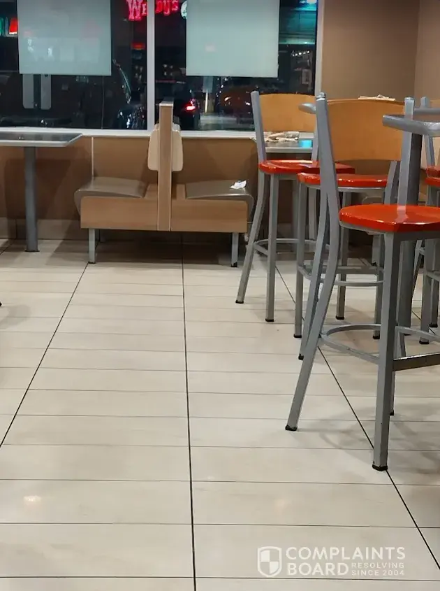 12/28/22 9:30pm Dining Room Service I entered this franchise and immediately observed the trash receptacles were full, the dining room tables were cluttered with previous diners' trash and the beverage station was covered by liquid spills, napkins, and cup/lid refuse. The front end staff were milling about and chatting as customers entered and took several minutes to respond to walk-up inquiries. I have pictures.