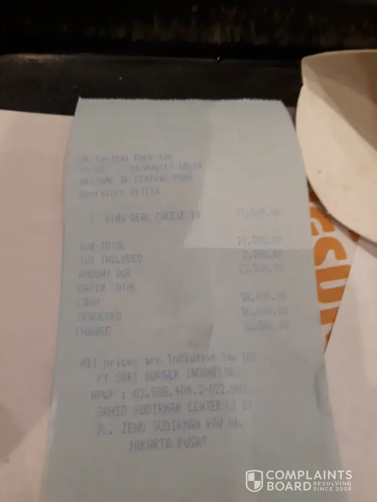 Saya pelanggan setia BK. Kecewa dengan pelayanan kasir BK dan restaurant BK di central park mall hari minggu 6 agustus 2017 sekitar pukul 7 malam. Saat pesan Paket Kings deal cheesse burger(struk terlampir), saat meminta tukat minuman coca cola dengan fres tea tidak diperbolehka oleh kasir, sedangkan di BK Citra land mall diperbolehkan, jawab kasir khusus di CP tidak bisa. Sungguh ironis ada diskriminasi kebijakan manajemen.