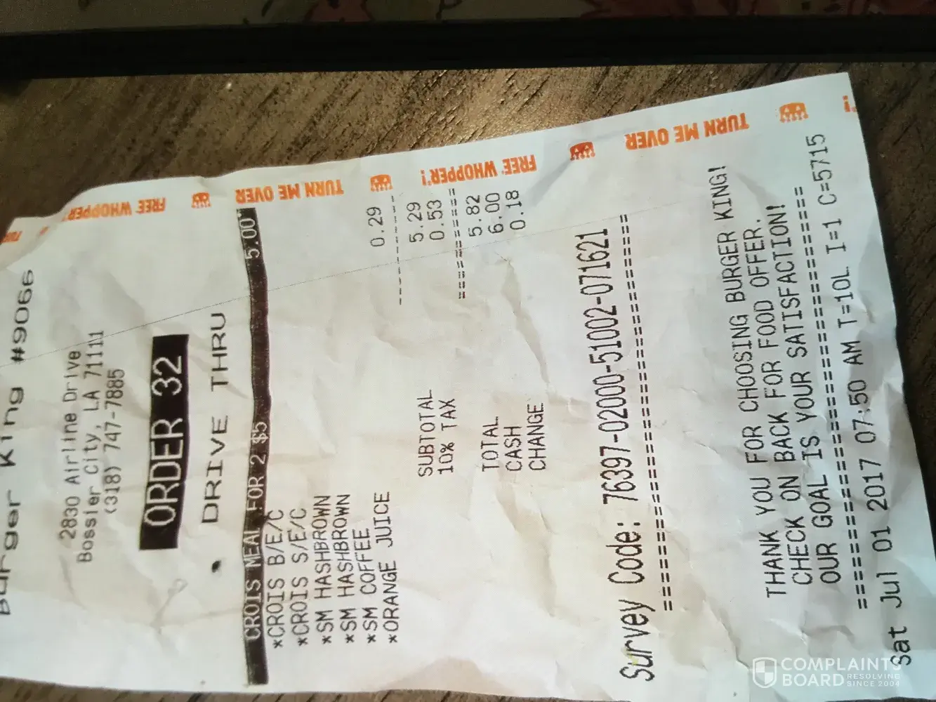 I first ordered my food through the drive thru on 07/20/2017 and a really slow night. At window the guy tried to charge me a dollar more than my order was. Then the double bacon cheese burger I ordered was super small and I was hungry. I asked if I could also get a chicken sandwich. The guy at window said you have to drive back around and order at the order menu. I told him nobody is behind me or even at the order menu. He just shrugs his shoulder and I just drive off. Then get home and call the locations phone number at [protected] and nobody answered and the phone rings and few times and then hangs you up. I called 3 times and got 3 hang ups. Then they called back and I explained my issue to some guy and he said that is their policy and I asked why would I have to drive all the way around to order when nobody is at the window or behind me? He then says do you want to talk to a manager and then put the phone by the dishwasher. I have been waiting over 30 minutes now for a manager to come to the phone. That is why I am typing this complaint now to you. The onion rings where like twice cooked and burnt. I could only eat 3 of them and through the rest out. The burger was like a mini burger. The apple pie top layer was soggy and nasty. This is the reason the place is run down and not making much because the employees are not professional. Usually burger king restaurants have lines in the drive thru and this one doesn't because this franchise does not know how to do good up keep at this location. This location is 2439 W. Ledbetter Dr. Dallas, Texas 75233. This location does not represent your fine company in the least bit!