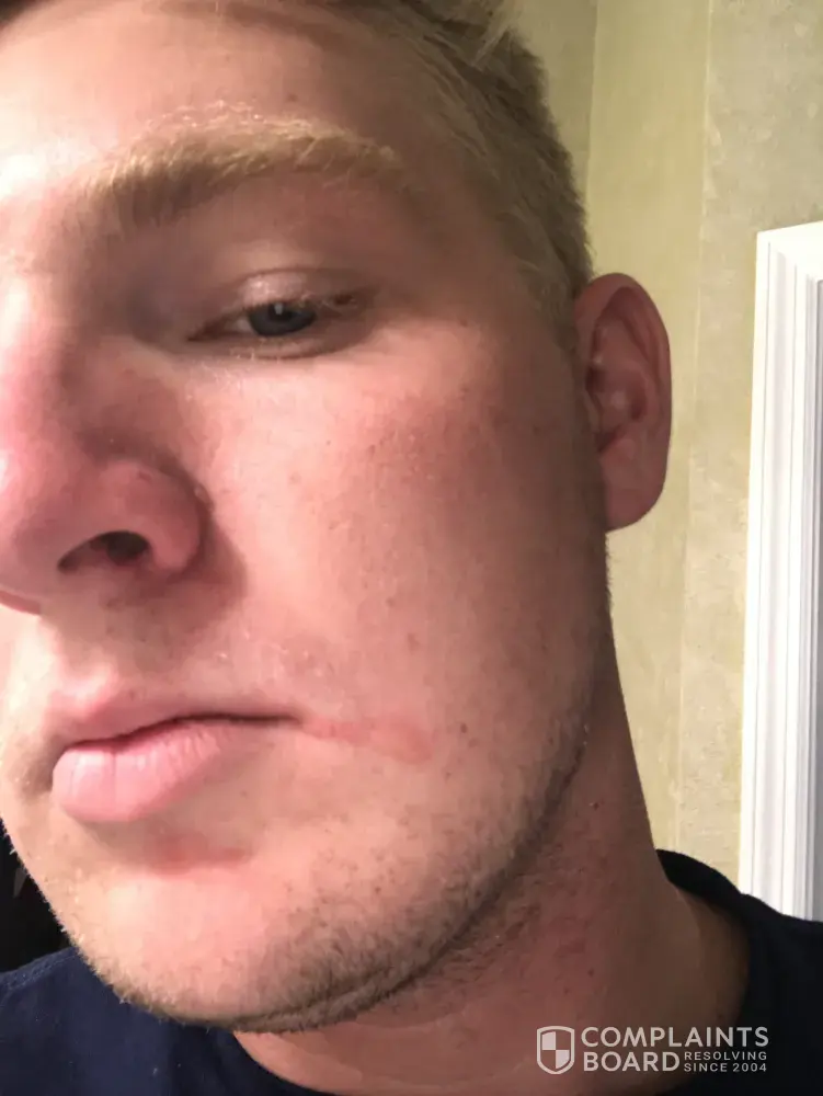 I visited the Burger King located inside Walmart in Venice Florida on 6/15/17. I ordered a crispy chicken sandwich. I took my first bite and hot grease exploded out of the chicken burning my lips and cheek. The burn has now blistered. See photo attached. I asked the manager to fill out an incident report and was shocked when she handed me a blank sheet of paper and a pink inked pen, and asked me to write down my name and address (not very concerned or professional). Lisa, the manager, said she would tell the insurance company.