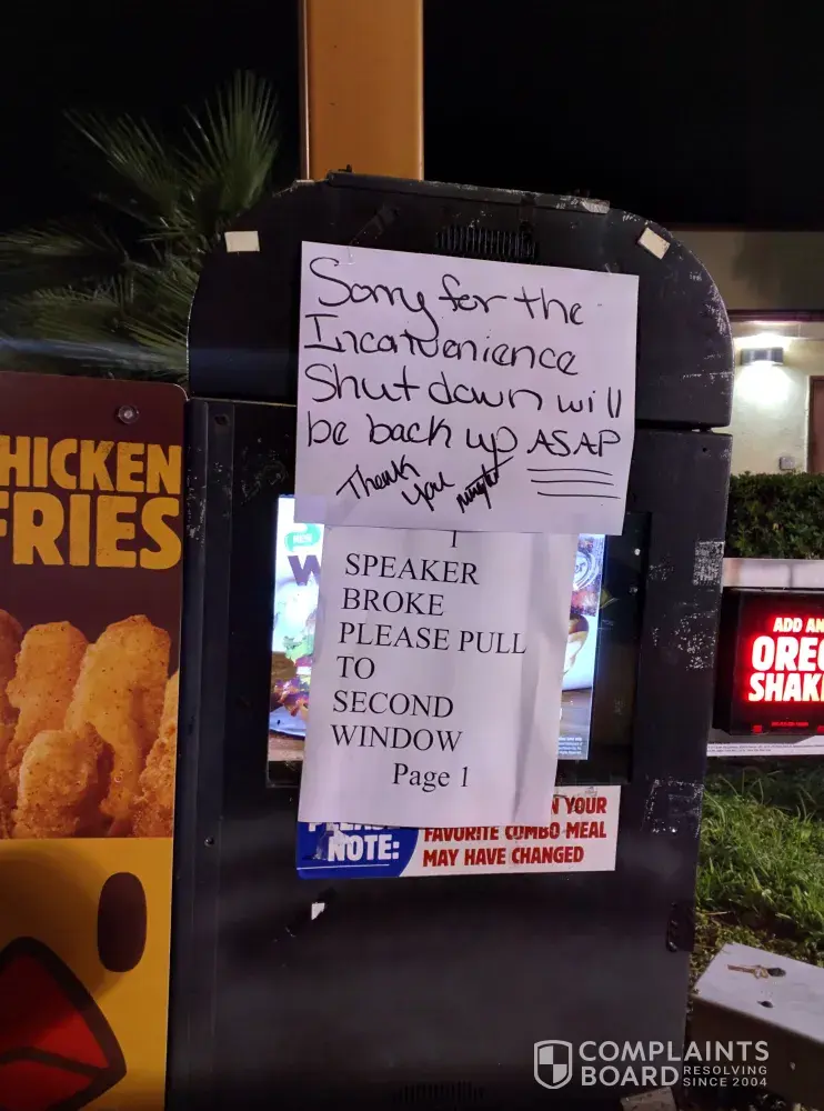 12/21/2015 12:35am This locations drive thru is always closed from 11:30pm to 2am and they always state end of shift or computer problems and can't server anyone. This has been going on for years and no one seems to do anything about the laziness of the employees not wanting to do there jobs. This location is falsely stating its open 24 hours . I think the...