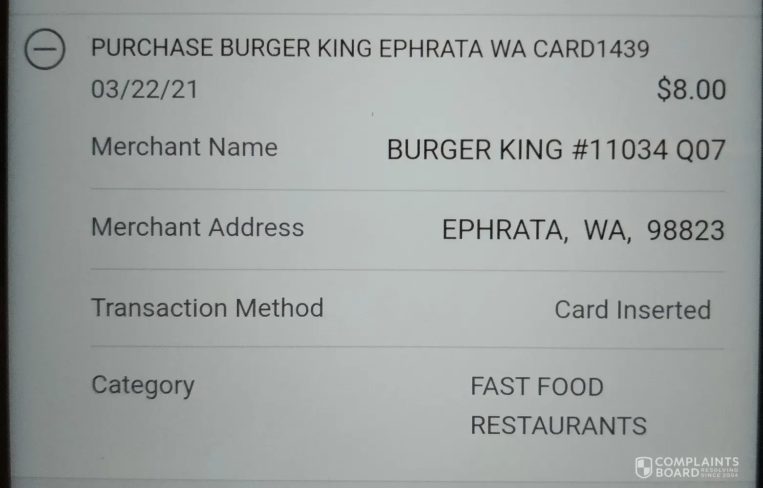 BURGER KING #[protected] VALDOSTAGA 4849 DEBIT CARD PURCHASE