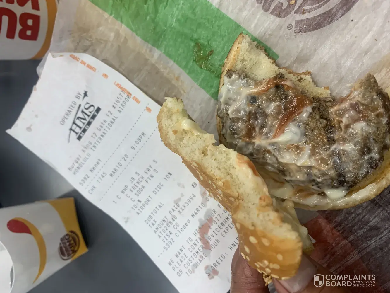 I've ordered a Junior whopper meal all i received was the bun, burger and mayonnaise. I didn't have enough time to return to the location due to time restraints of my lunch break. I am very disappointed on the service I received this was on email I am in nine hours of work