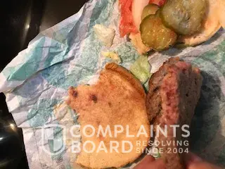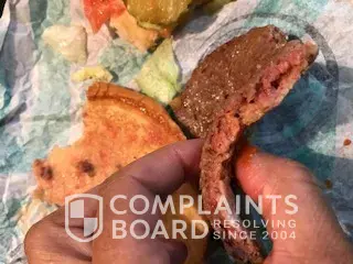 Went through drive thru, paid for my order. Was asked to pull to the side to wait for my order. manager came out to bring my order and said the impossible burger had been freshly made. Left came home, took two bites of my burger and realized something was'nt right. Open up the burger and found that I had a mushy red uncooked burger. I called the restaurant...