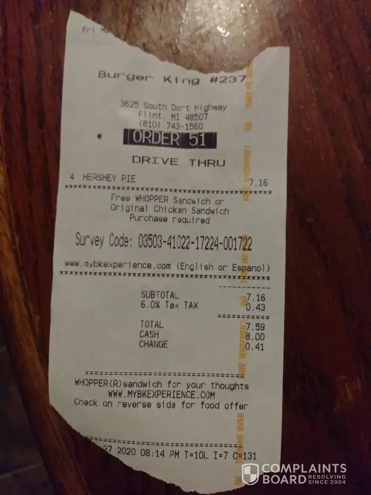 My son has been a regular customer for over 3 yers at the Wahpeton, ND Burger King.