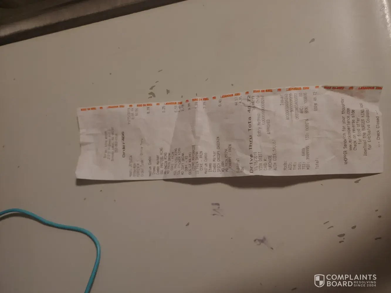 went to BK the night before heading to work and i ordered a whopper meal. my order was incorrect and i contacted the manager and told her that my meal was incorrect and I asked for no onions because i'm allergic. the manager supposedly looked up the orders and said there was no whopper burger meal in her system. she was very unprofessional and rude. and told me she couldn't do anything about my incorrect meal. I'm very upset because i can't get my meal replaced.