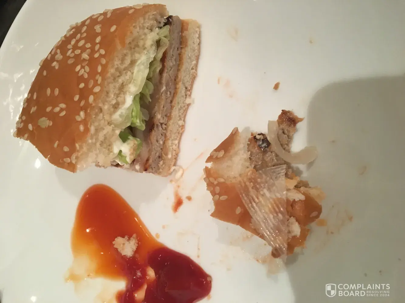 With this I'm sending you the picture of the burger and the piece of plastic.