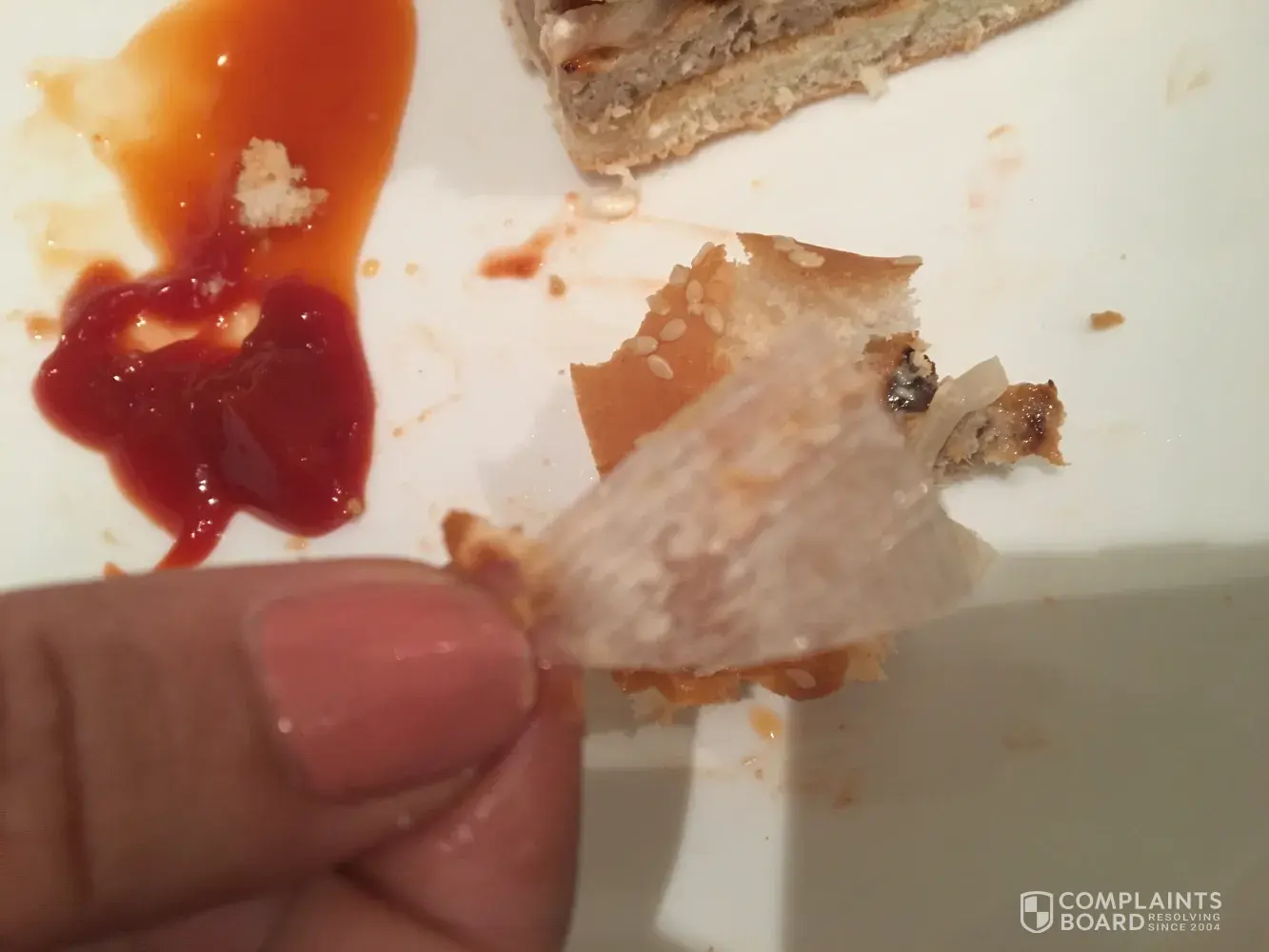 Today we ordered Burger King through Grab promotion after opening while having the same we have found a piece of plastic in side the burger. This is not exceptable it could have been dangerous to us.