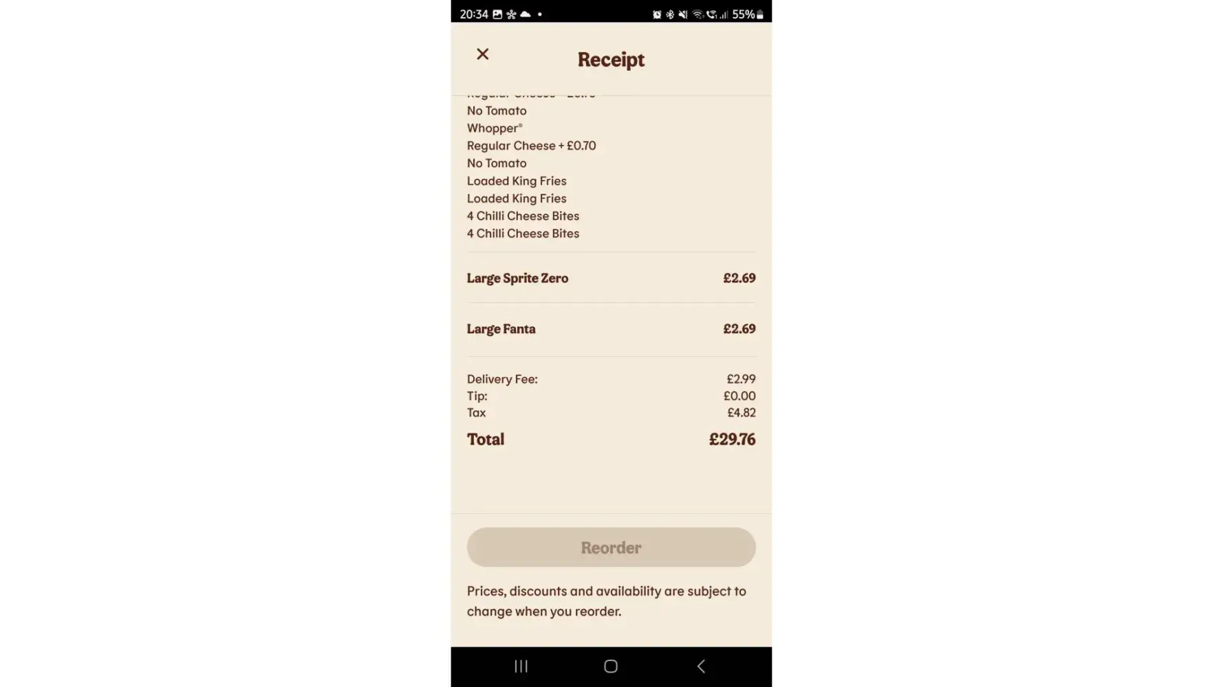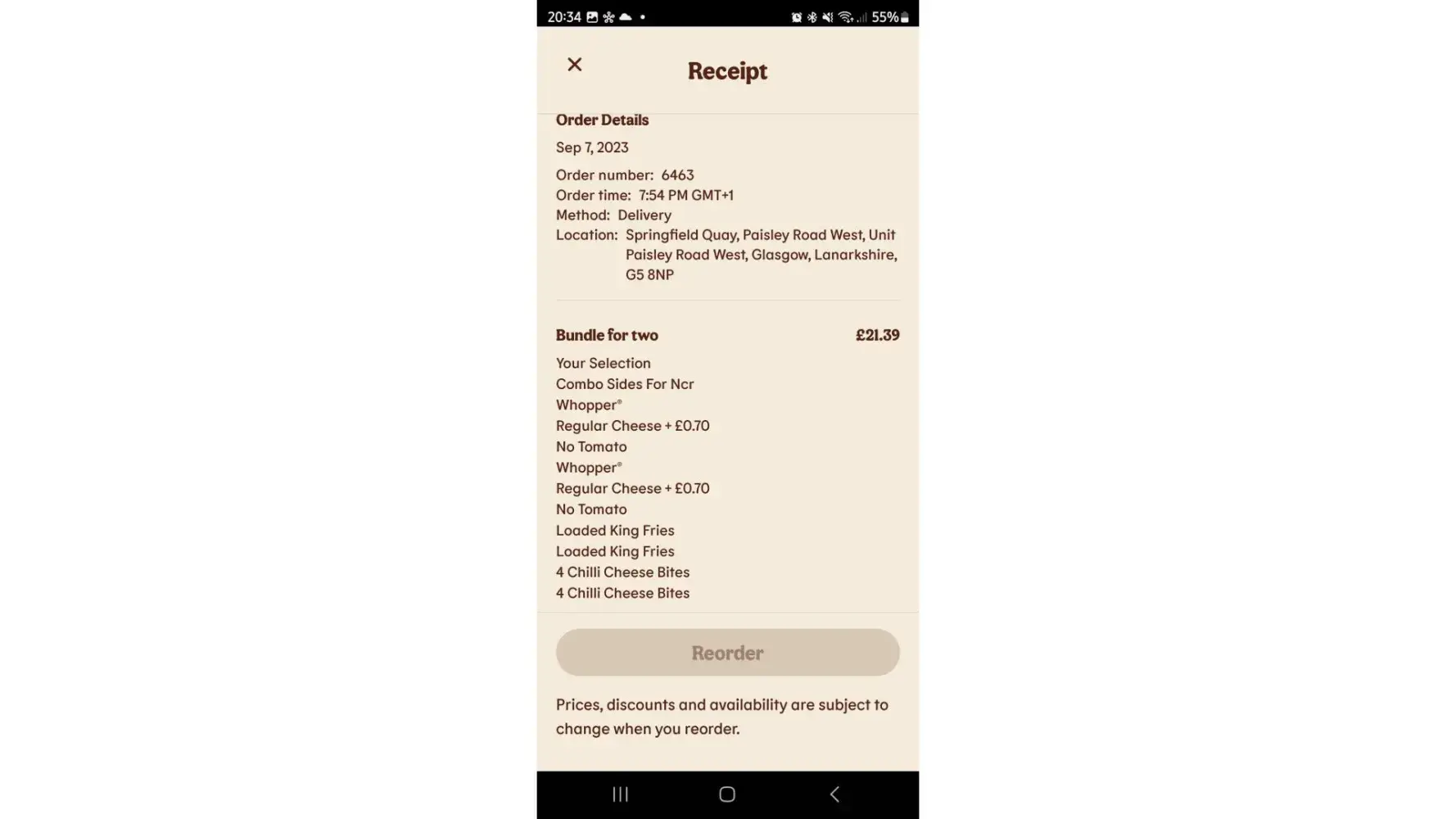 Placed order through Burger King App 7th September, which is partnered with Deliveroo.