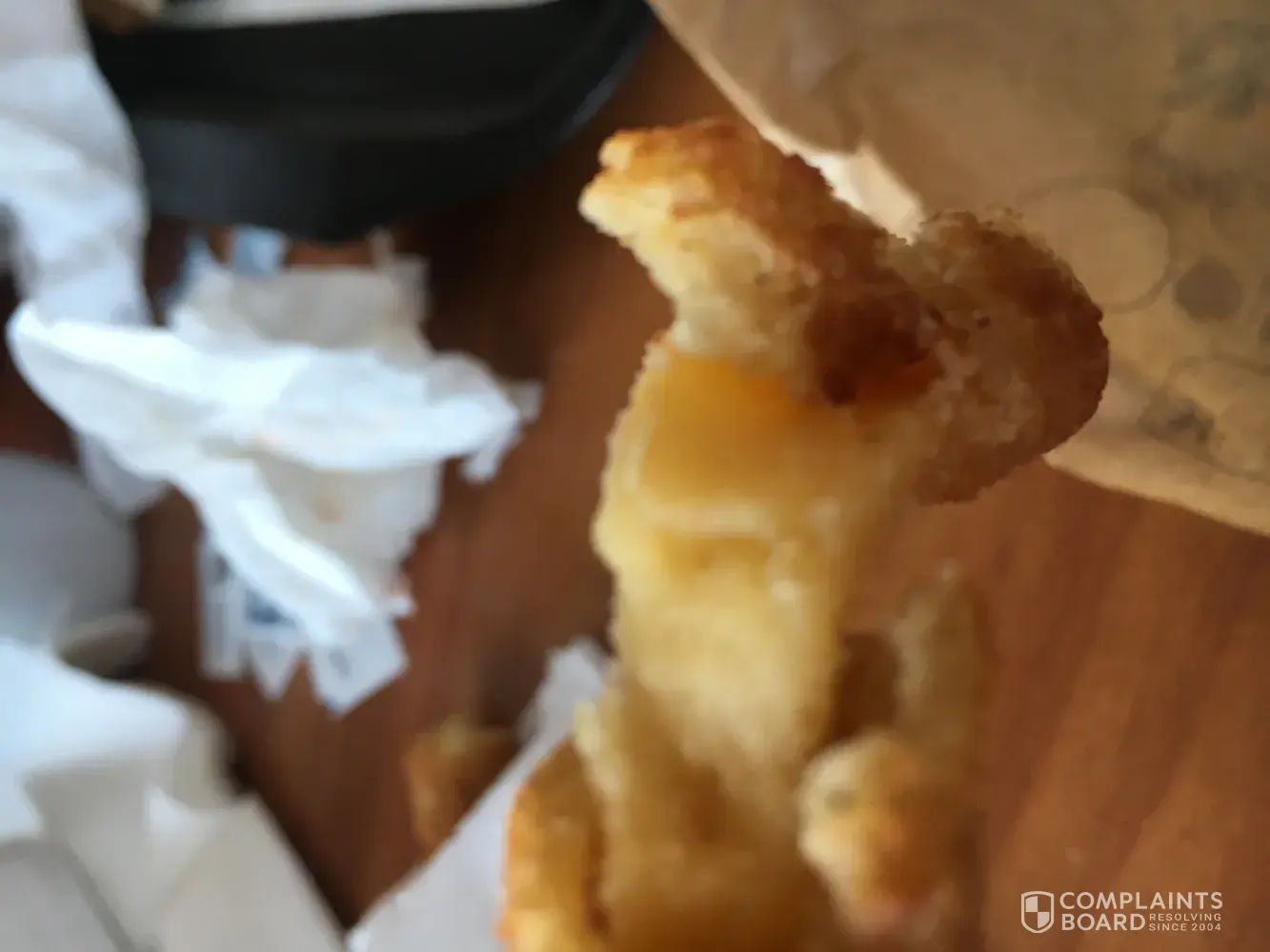 My wife and children went to this BK to have dinner. My son's crispy chicken sandwich and my daughters chicken fries were overcooked, badly. My wife brought me home a Whopper meal with cheese and a 10 piece nugget. The whopper had no cheese and the chicken nuggets were uncooked in the middle, you can tell they were not shaken while cooking. I found one...