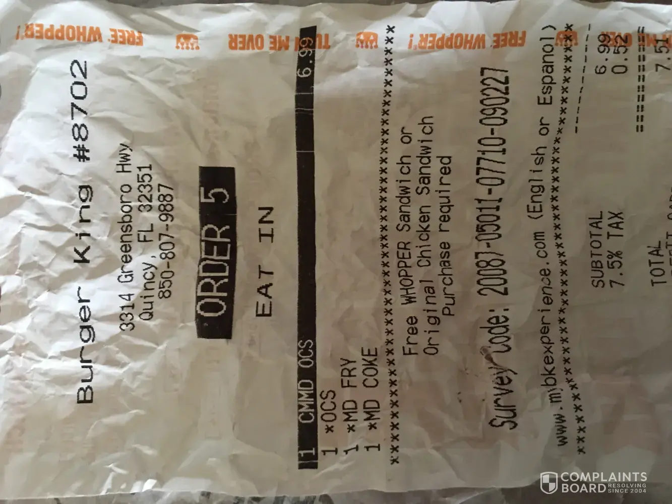 We have gone to this burger king numerous times because we live nearby. The last few times they have shorted us on our food, given us the wrong food, argued with us about how much food we were supposed to get on a coupon. It's been terrible service. Today we ordered the coupon code 9330 for 2 large fries and 40 nuggets. We wait for nuggets to be made and drive away with one large fry and 20 nuggets