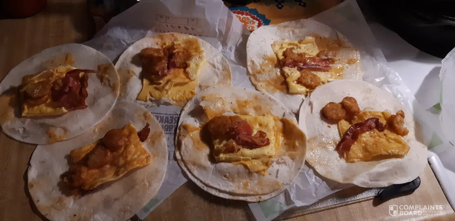 My husband ordered 5 tacos last night at Burger King in Shelbyville Kentucky. We got home and I could not believe what I saw when I opened the packages and one taco after the other had some type of mystery "meat" inside it, there was 2 tiny lettuce pieces per taco, and cheese was nowhere to be found. I wouldn't even let my husband taste them, I thought it would make him sick, the way it looked. Something needs to be done to make up for this, it was a complete waste of money! I will include pictures below. I would like to be contacted by Burger King with a solution to this issue!