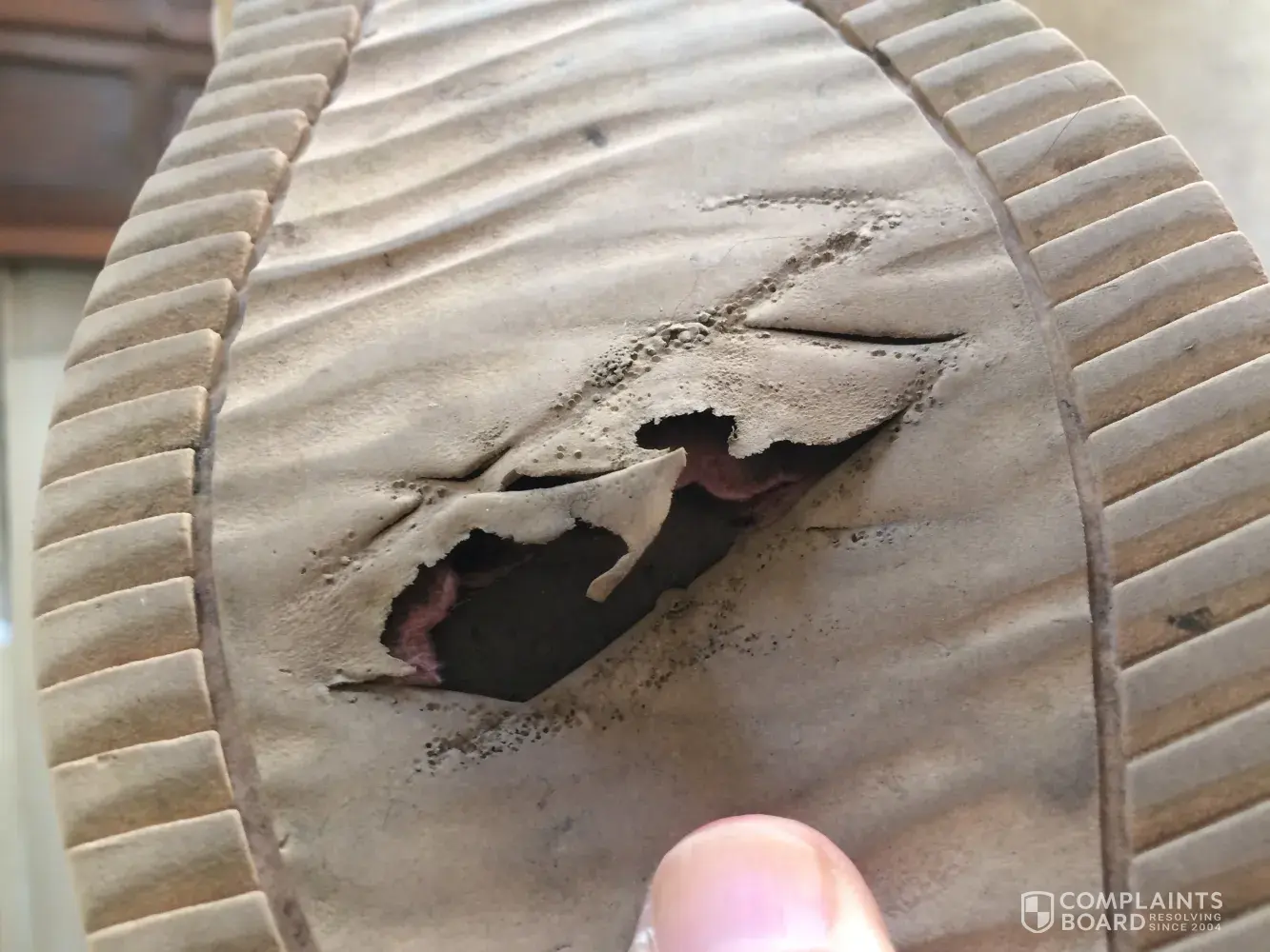 I purchased a pair of tennis shoes from your store in West Hills, CA in September. Normally I purchase them at Target or Walmart, but I wanted to purchase a shoe of better quality. The shoes I purchased from your store lasted four months. The soles are so thin, that a hole formed in my right shoe and water and rocks entered the interior of the shoe. The...