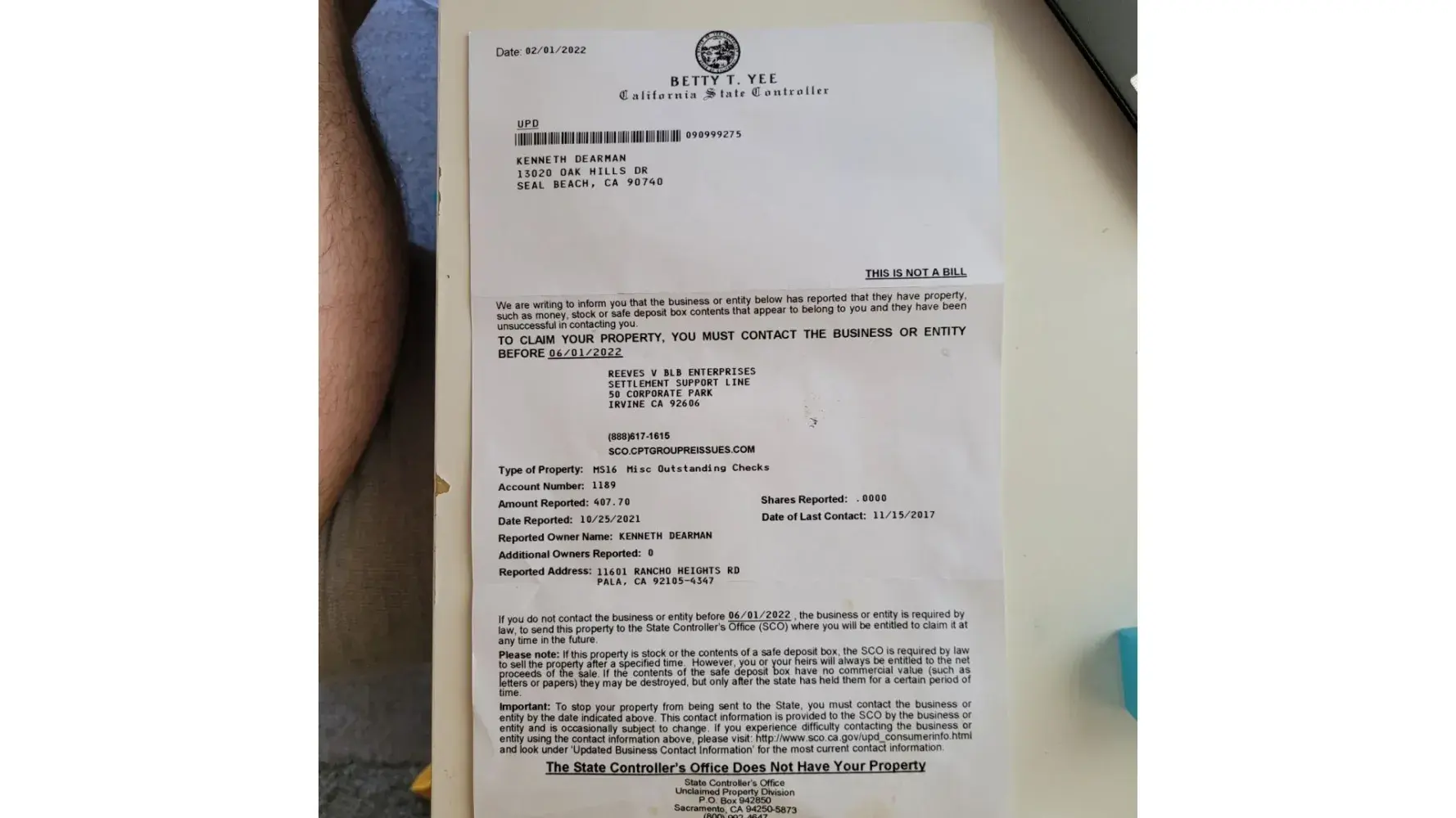 I believe CPT Group inc. or someone pretending to be them is scaming people out of their property and personal information including their Social Security number. The company claims to reissue checks from the State Controller Betty T. Yee with the State of California. They send out a letter that I have taken a picture of and uploaded below. I received thi...