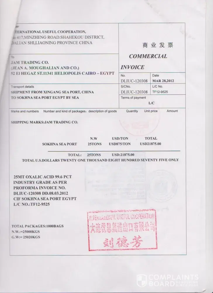 Dear Sir; Please Need Your Help Urgently, My Name Mohamed Abd elrahman From Egypt My Company JAM trading co. Egypt which Chinese Company name International Useful Cooperation, Address: NO.417, MinZhengRoad, ShaHeKou District, DaLian Shi, LiaoNing Province, China, cooperation Website www.dliuc.com Tel: [protected]-[protected] 0411-[protected], Fax...