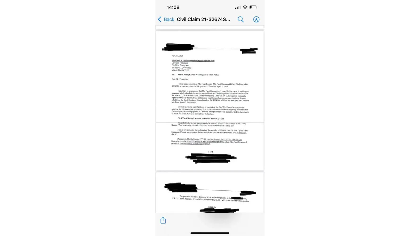 The worst thing that could happen to me was trusting Chef Gio Enterprises to do our wedding in April of 2020. Beginning the pandemic, I sent an email to the chef from Honduras, where my husband and I were living at the time, that we were not going to be able to celebrate the wedding that we had hired him to cater. We paid a total of $5,245.00 almost 8...