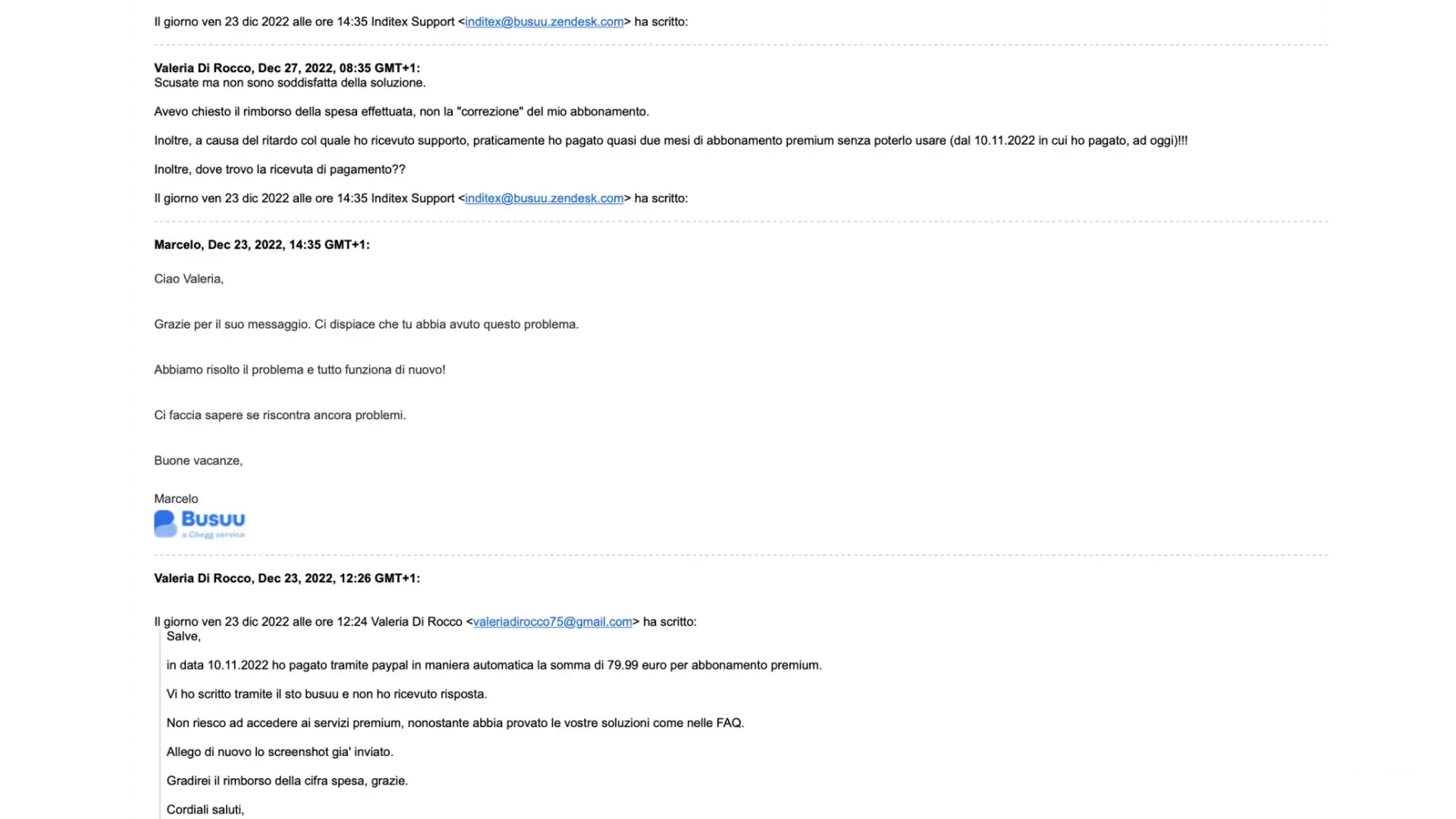 Desired outcome: Rimborso completo dei 79.99 euro pagati