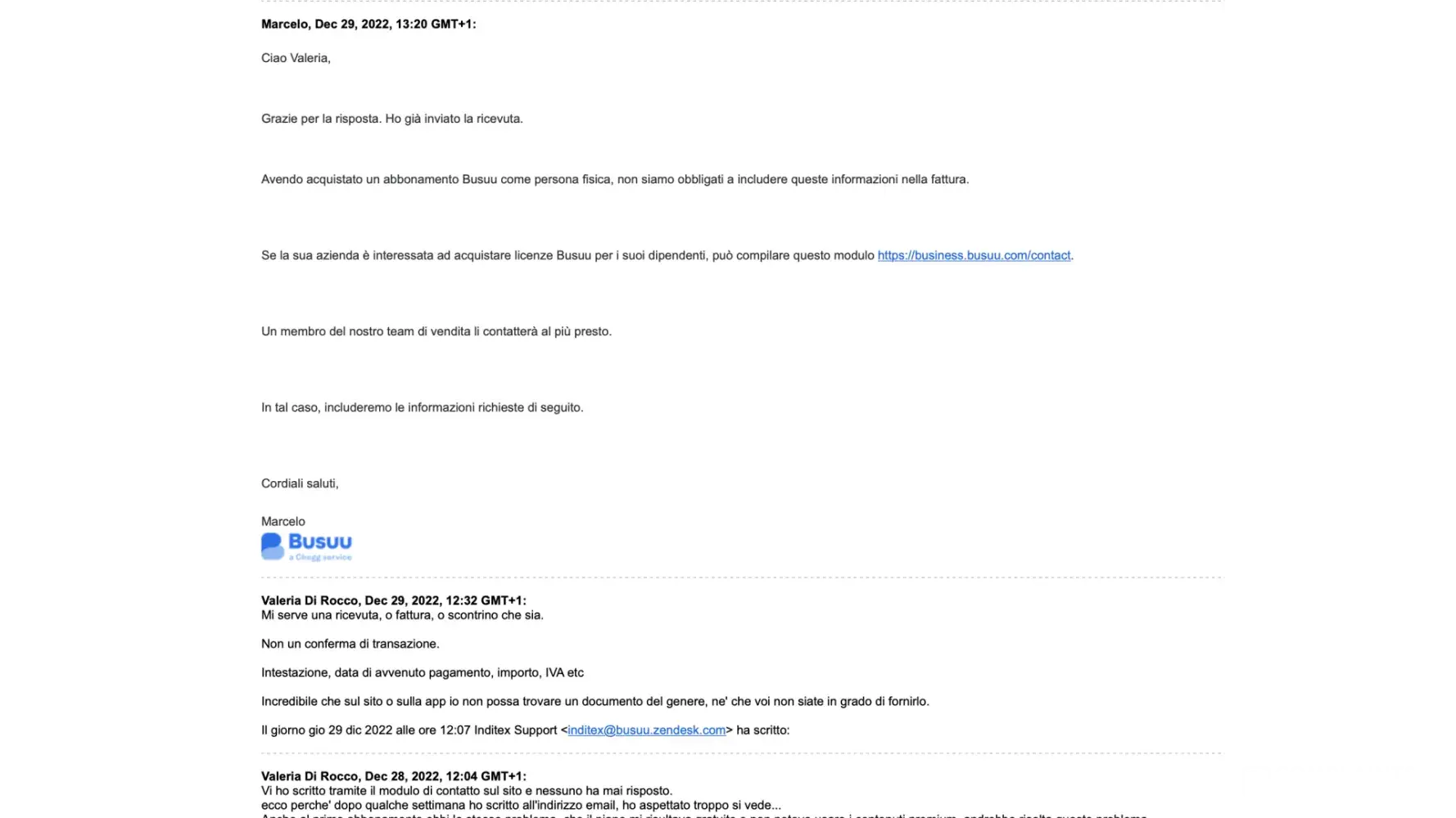 Successive richieste di ricevere normalissime ricevute vengono rimbalzate, anche scortesemente, sempre con la frase "Non includiamo le informazioni sull'IVA nelle ricevute per le persone fisiche."