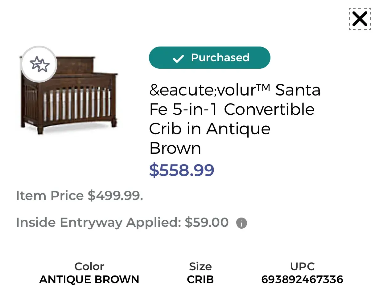 I ordered the crib with an enclosure card on 9/26/2020 online.