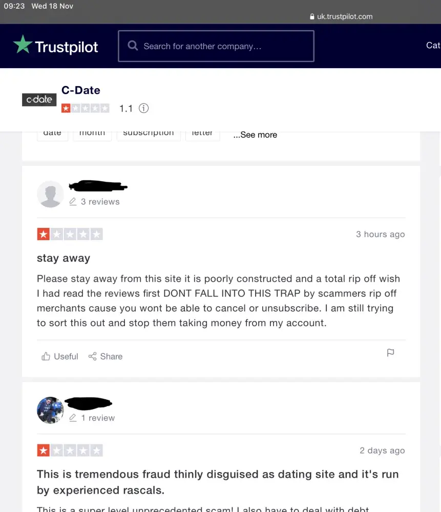 16/11/2020 - signed up for Cdate premium membership to find out the whole website is a fake. Was immediately overcharged upon signing up (advertised at less than £3 for one month subscription/trial, was charged £9.90). After these 2 red flags I did research on trust pilot and found hundreds of anecdotes exactly the same as mine, calling the company a huge scam. Apparently C date do not let customers cancel or withdraw their subscriptions even though their terms and conditions CLEARLY state they can, and end up charging people obscene fee's for nothing and involving debt collectors to intimidate people into paying for nothing. I have emailed c date with no response, and sent a letter clearly expressing my desire to withdraw membership As per their terms and conditions but am worried I am going to get slapped with a bill for a complete scam. I would very much like C date to confirm that my subscription is cancelled immediately and no further charges will be incurred.