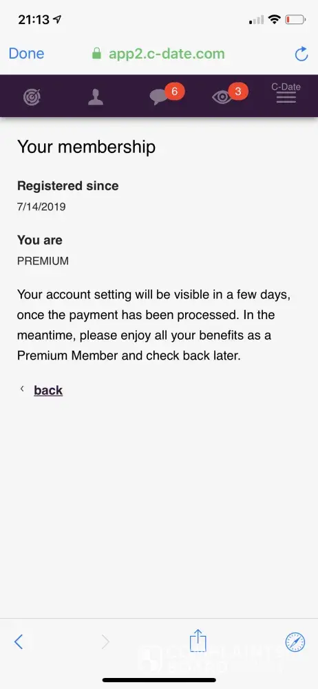 we're sorry to hear about your issues. Please contact us directly at cs @ c-date . com from your registered email address and add ''complaintsboard.com'' into the Subject header.