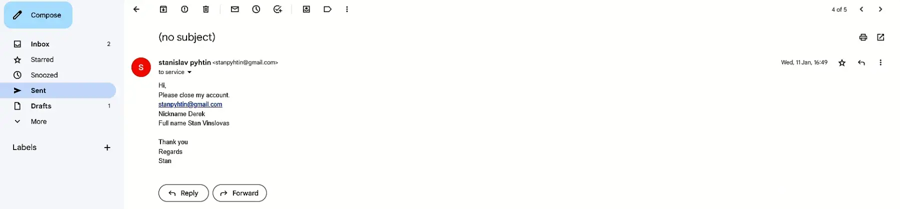 Please send an EMAIL confirming my account HAS BEEN DELETE for my records. rather sending me an email "Our department is no longer responsible for your case".