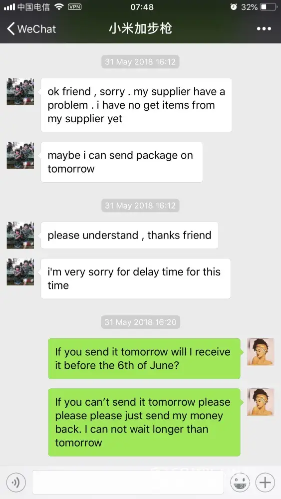 I ordered Xiyouji qingzhi from this supplier in China. Because I am in China, I decided to pay via WeChat, a total of 328Â¥ was paid to the supplier. The supplier then said he would need 3 days to get the package from his supplier then send it straight to me. I sent the money on the 22nd of May, after realizing it was taking far too long I asked for a refund, supplier refused and insisted on sending me the package that I still have not received even today. I've asked supplier for my money back time and time again to no avail. Supplier is a scammer! Would not deliver package or refund money!