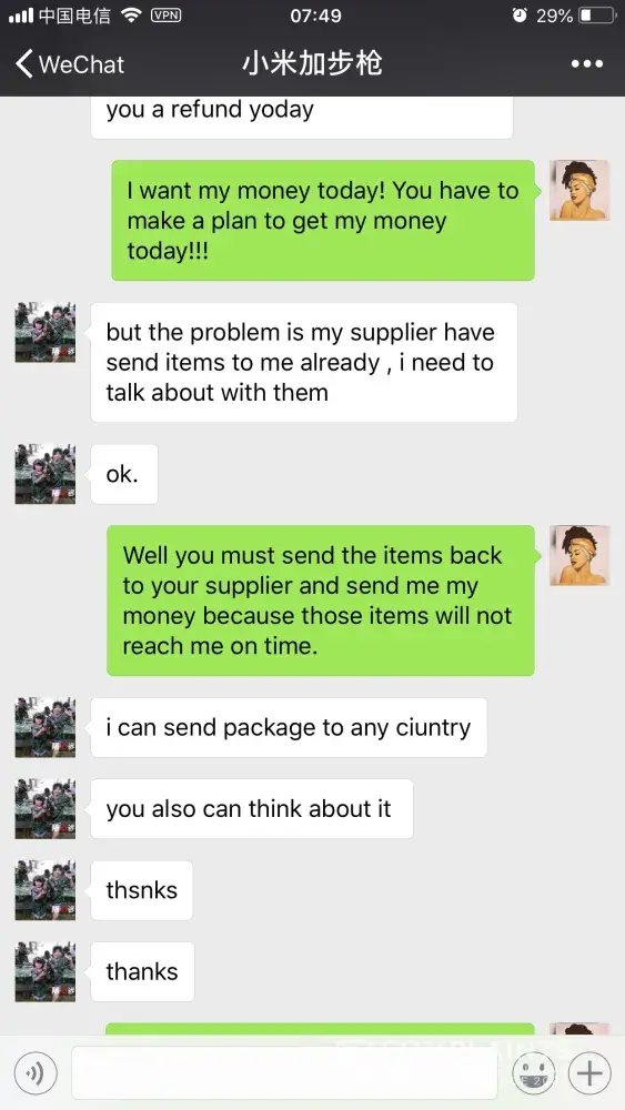 I agree at least u got something, I paid for an iPad and he told me that it was A chinese version, well when it was time for delivery he told me that they stop making them to many people was complaining about it so he tried to get me to pay 100 more for an American version I told him no, refund my money and that's all he told me that he would refund it back on 3/30/11 here it is and still no contact or money. I learned my lesson, never again.
