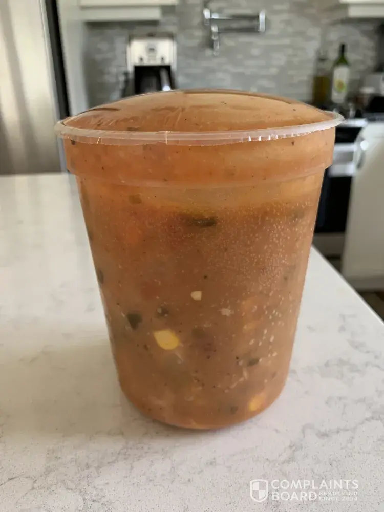 This KS Chicken Tortilla soup is marked with an open date of March 22, 2020. It has been stored in my refrigerator since I purchased it. I removed both containers from the cardboard packaging today (March 6). One of them has a very swollen top and does not look safe to eat. I don't want to have to drive to the store for a refund, so would like it sent to me.