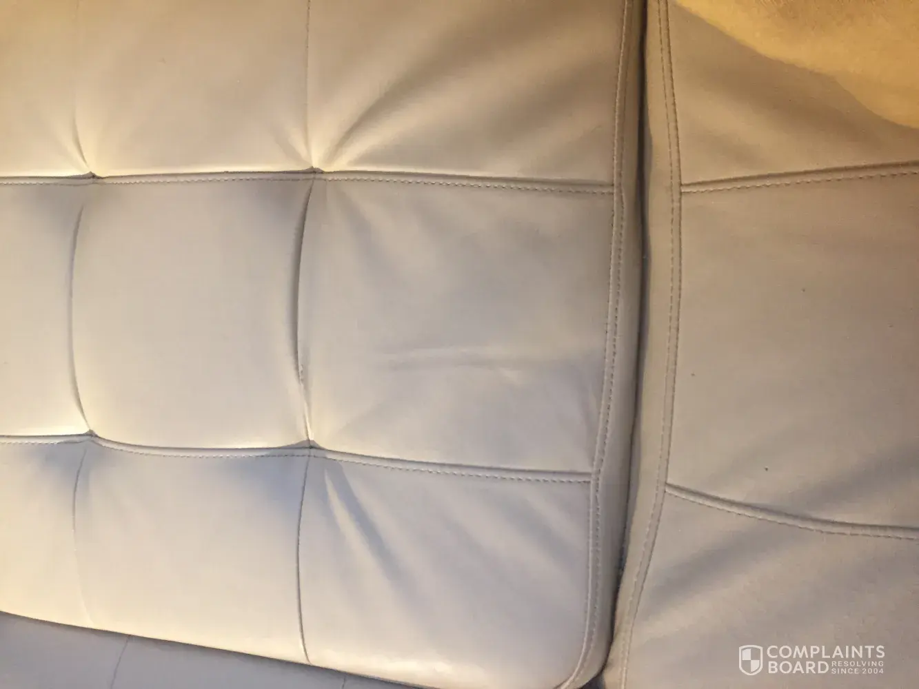 The surface on the faux leather sofa is peeling and the springs on the left side of the sectional are already dented.