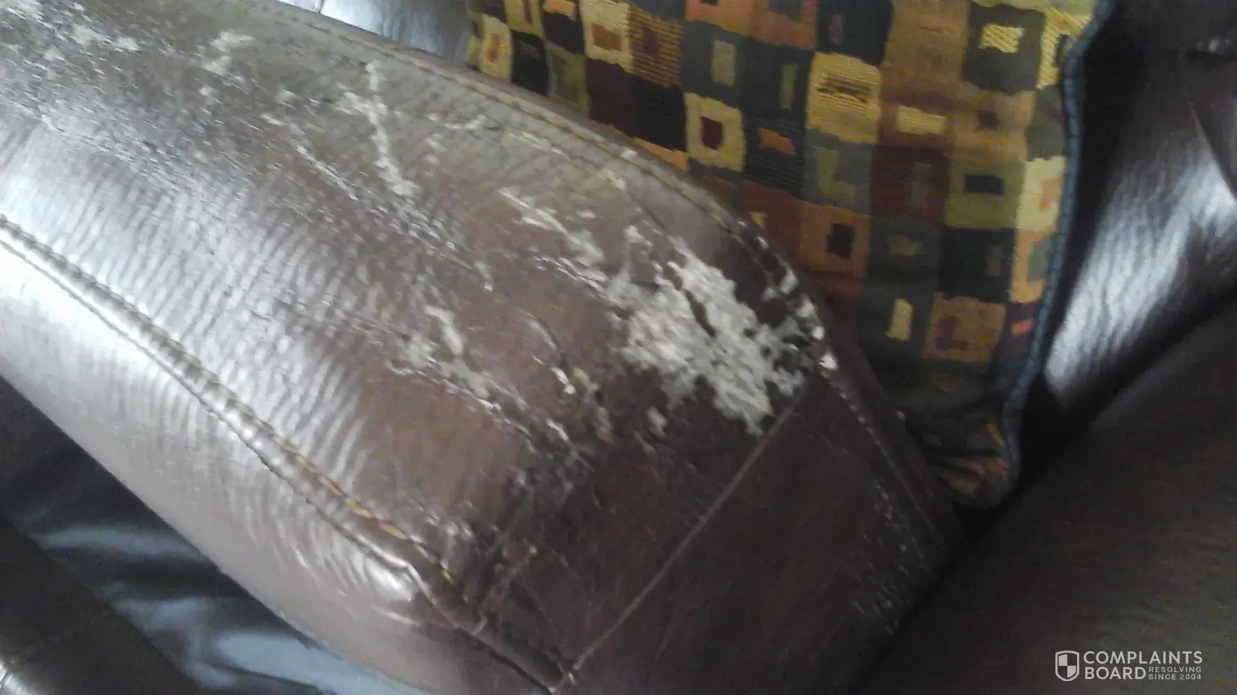 It appears to me that the couch was made with "bonded leather, " which is a very cheaply made product. The results in the photo can almost be expected under very little use. If one wants the product to hold up, full grain or top grain leather is what you should ask for. Be expected to pay a higher price however.
