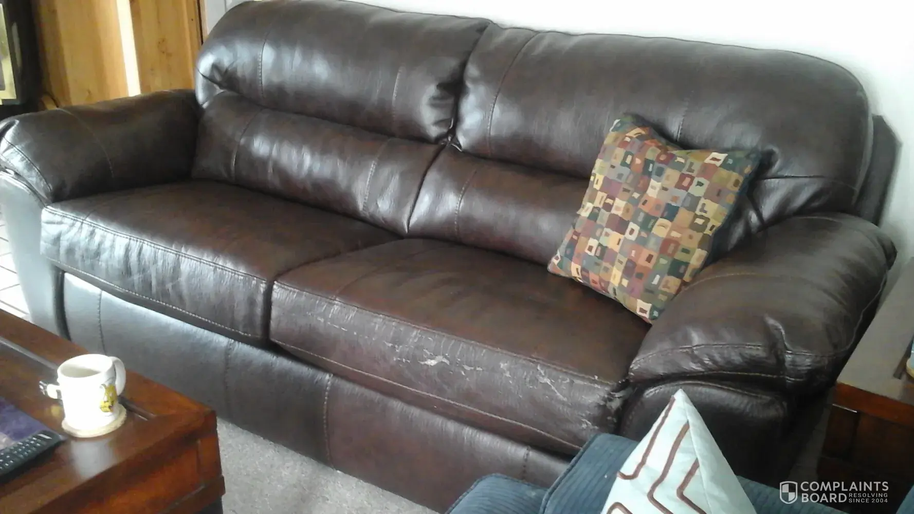 I bought a couch faux leather, I live alone... No children at home.. No pets hardly ever sat on the couch, it's only 5 yrs old... And it's peeling... Contacted leons in orillia and of course nothing they could do... So very dissapointed and won't ever shop there again and will tell all friends and family... You can tell by the photo that the couch is not been abused...