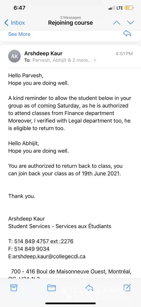 I have a complaint regarding my course. The college stoped my course due to a pending fee, as of now its been one month since I have paid my full tuition fee but they are still not starting my course nor responding to my Emails appropriately. The teacher of my is also behaving rude to me for no reason at all. I don't know what the college administration is up-to but please resolve my issue as soon aa possible. My student Id is [protected].