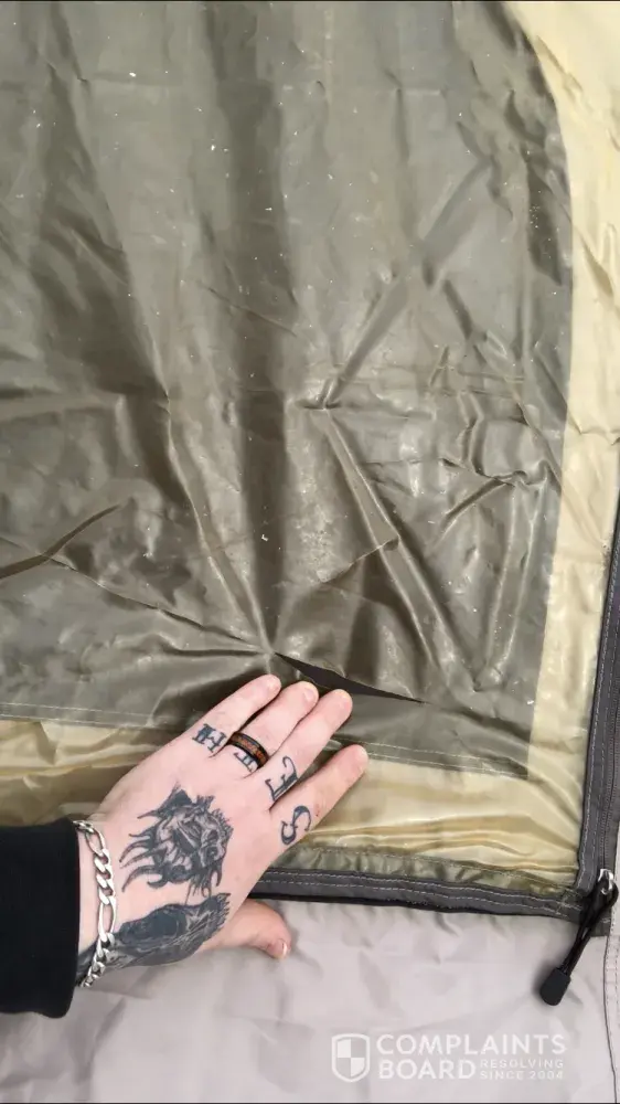 I bought the ultimate alaknak tent from the bargain cave from the south Edmonton location, I knew it was a display model but I didn't think there should be any damage besides some weathering and streatching. When I took it out camping a couple days after the purchase I found out one window is completely trashed the plastic is split across the whole window. I looked at the other windows and they aren't split yet but after this summer I can't say they won't be. Also on the floor of the tent are some holes from improper set up that don't have a patch over them and there is a hole in the wall that was patched. I understand it's a display model but the price I payed for this tent makes me very unhappy with the condition it's in. I'm pretty close to writing reviews about this on public forums because when I went back to the store to see what they would do they offered me staff discount on a floor liner or roof protector I didn't go there to pay more money. This tent was a very exciting moment for me and my family we could never afford this tent without it being in the bargain cave but we also thought we'd get more then a tent full of holes I don't think it will even make it through the summer. So please I ask if you could do anything to rectify this for a young family who love to camp and thought this was going to be our dream tent. I don't think this tent should have even been for sale. In the photos of the window it's hard to see but the creases on all the windows like that are very close to coming apart.